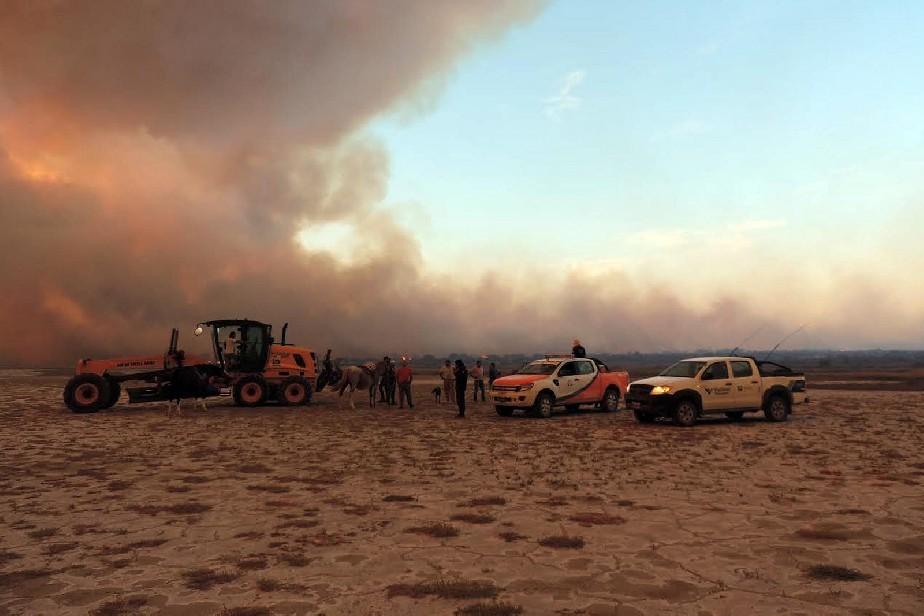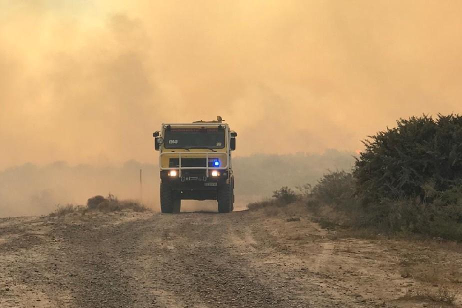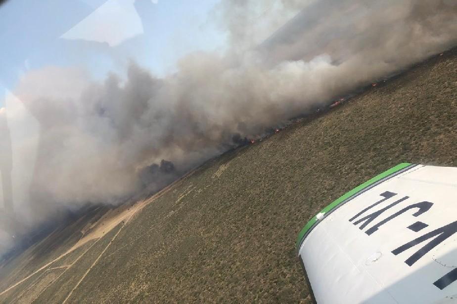 El área de Protección Civil, dependiente del Ministerio de Seguridad y Justicia de Río Negro, coordina las acciones de combate del fuego en el incendio producido en campos cercanos a Río Colorado.